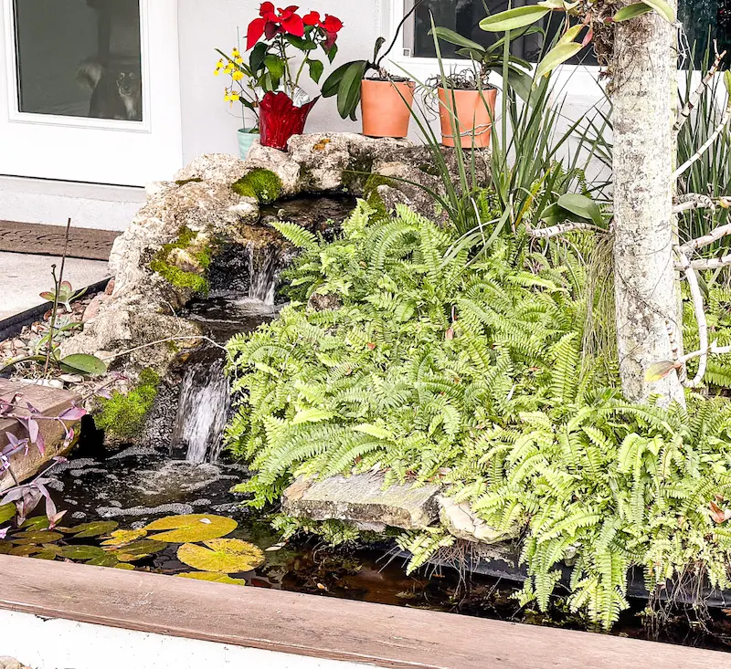 - Waterfall with decorative wooden border